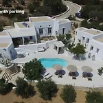 Deze 5-slaapkamer Villa Mikro Chorio bevindt zich op 7 km van de Katapolianíkerk en beschikt over een gemeenschappelijke lounge met uitzicht op de zee. Deze 5-badkamer accommodatie biedt uitzicht op het zwembad en nodigt gasten uit om het Kolymbithres-strand te bezoeken, binnen 10 rijminuten verderop.