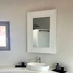 Villa Mikro Chorio beschikt over een badkamer met een apart toilet en een douche. Er zijn een haardroger en handdoeken voor het comfort van de gasten.